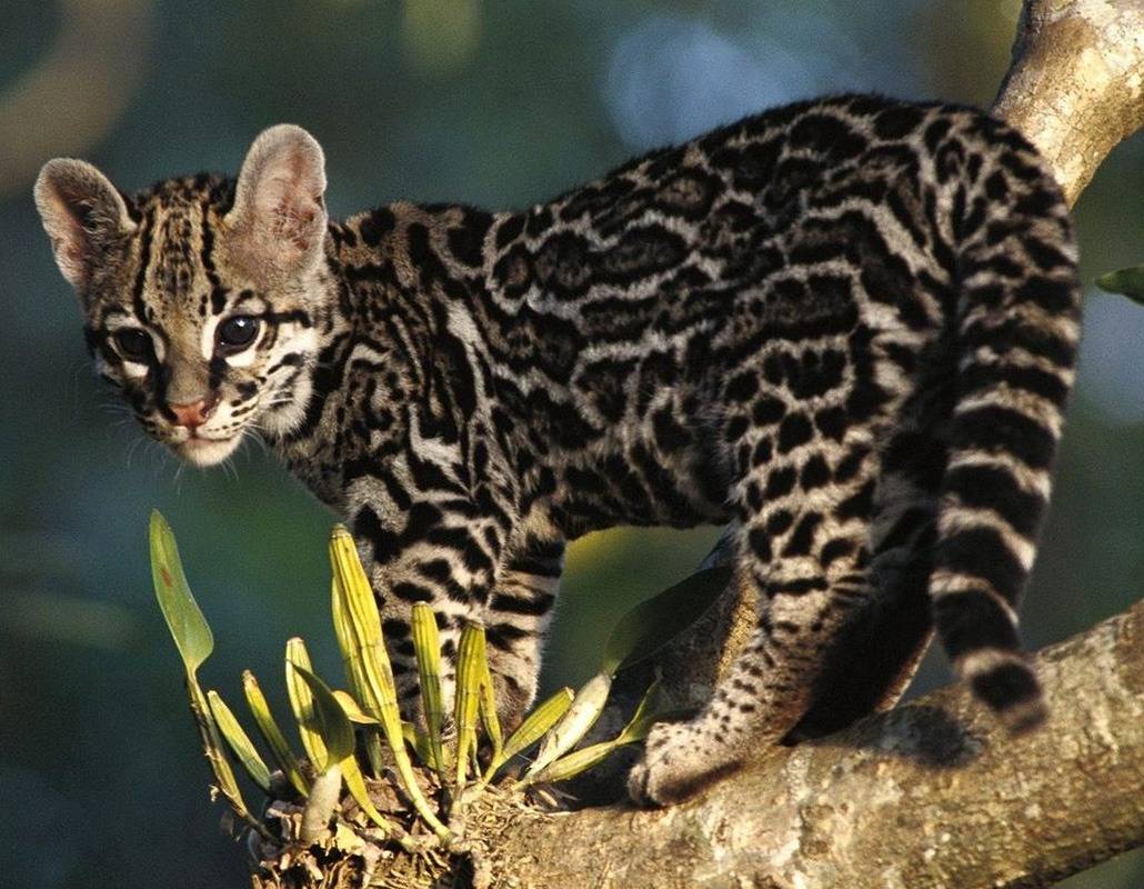 Миниатюрная копия ягуара – как можно понять из названия. Имеют гибкое тело и сильные, но короткие ноги. Высота в холке — до 35/30 см (самцы/самки). Вес — до 9 кг. Встречаются в разнообразных местах — саваннах, лесах, тропиках. Скрытные звери, но ведут дневной образ жизни. Питаются мелкими млекопитающими, земноводными, птицами, рыбой.