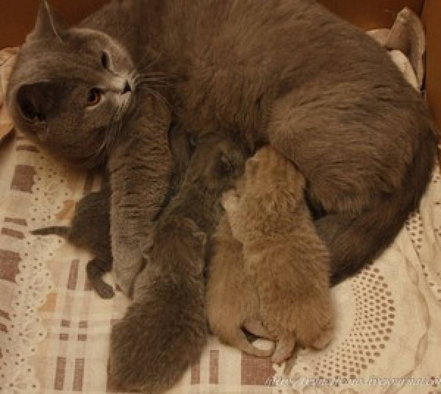 Сразу после рождения котята необычайно беспомощны. Они не могут видеть и слышать, но зато отлично чувствуют запахи. Именно обоняние помогает котятам после появления на свет найти сосок матери. В первые часы после рождения они питаются молозивом, которое содержит все необходимые питательные вещества и помогает становлению иммунной системы новорождённых котят. В этот период кошку с выводком лучше не тревожить без необходимости, не брать котят в руки.