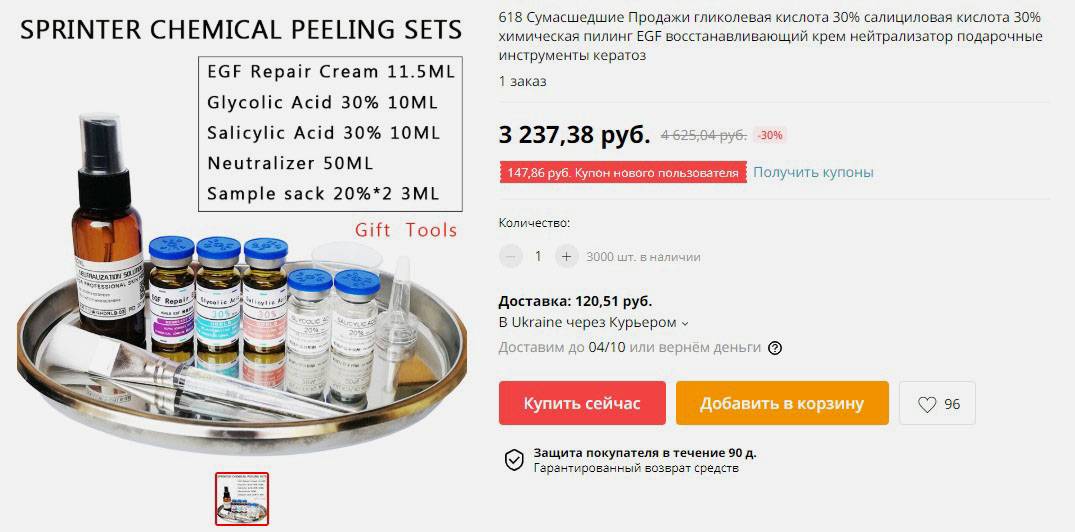 Конечно, гамма-бутиролактон мы на AliExpress не нашли. Но при желании и набор косметики для кислотного пилинга могут изъять – не всегда состав на этикетке отвечает реальному. Список запрещенных веществ здесь.