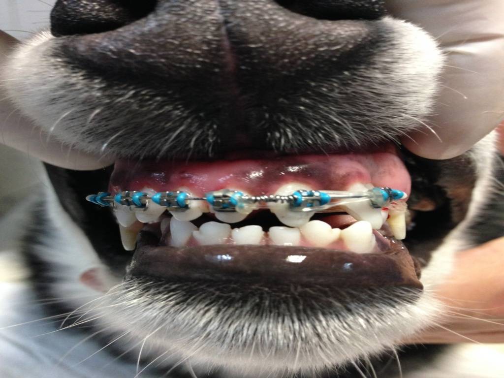 Обратите внимание! Для выставочных животных есть возможность ставить специальные брекеты. Есть породы, у которых почти всегда имеются проблемы с зубами. Это пекинесы, бульдоги