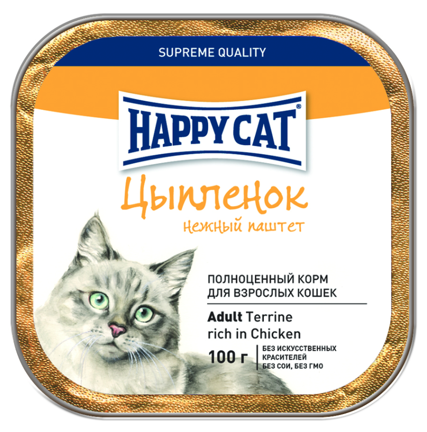 HAPPY CAT ADULT ВЛАЖНЫЙ КОРМ ДЛЯ КОШЕК ПАШТЕТ КУСОЧКАМИ С ЦЫПЛЕНКОМ.