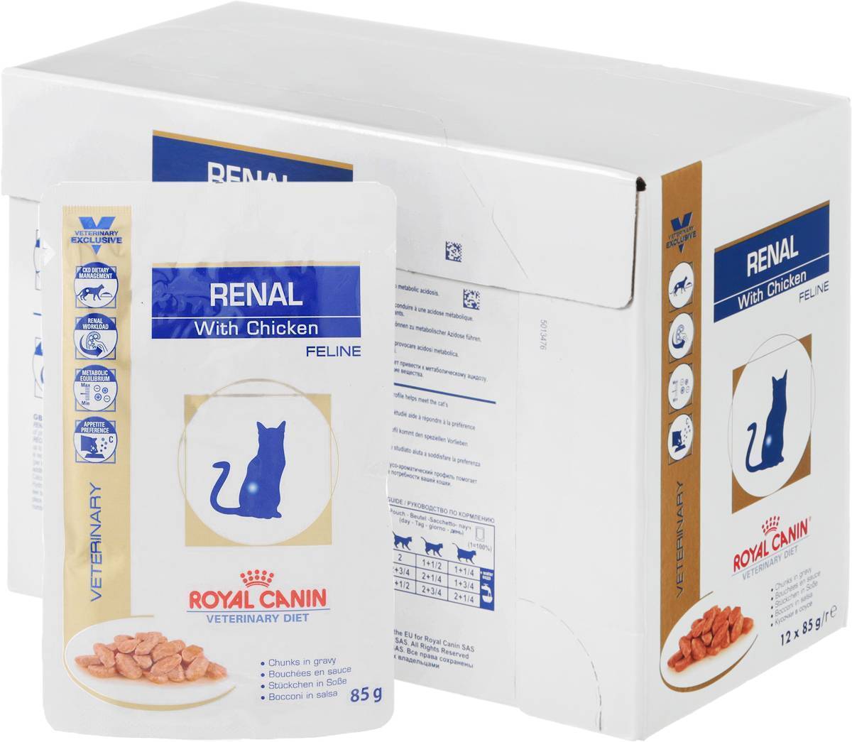 Royal Canin Renal для кошек выпускается в виде сухого корма (крокеты) либо мясных консервов. Он рекомендуется для котов с почечной недостаточностью.