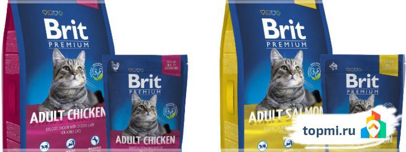 Линейка Brit Premium, реализуемая в синих пакетах и пачках – это качественный корм для кошек, ассортимент которого состоит из 8 видов сухого рациона и влажных паучей весом по 100г. Рецептуры различаются в зависимости от возраста кошек, их индивидуальных потребностей (кастрация, чувствительный пищеварительный тракт, избыточный вес и т.д.).