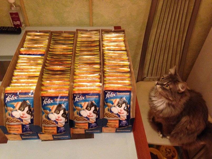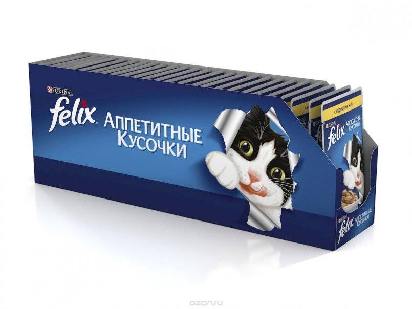 Из плюсов на первом месте, конечно же, стоит выделить цену. Она не проста небольшая, а даже низкая, если сравнивать Феликс с кормами-конкурентами. Но в стоимости кроется небольшой подвох. Она такая низкая из-за небольшой себестоимости. К примеру, в одной пачке мяса или рыбы не так уж и много. Они занимают десятую часть от веса. Так как производитель не раскрывает точный вес и названия некоторых составляющих, то это также является минусом товара. Тем не менее, ветеринары его часто рекомендуют и называют качественным.