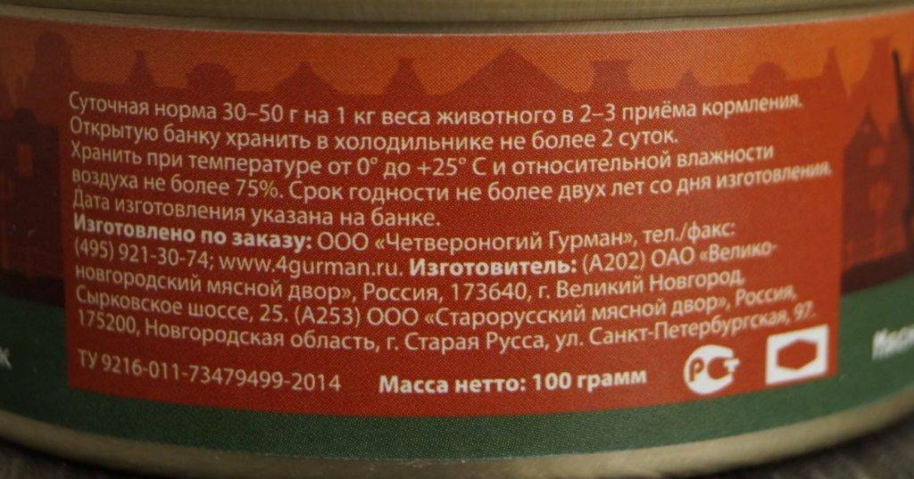 В целом состав консервов Четвероногий гурман «Мясная линия» довольно неплохой, он более чем соответствует премиум классу.