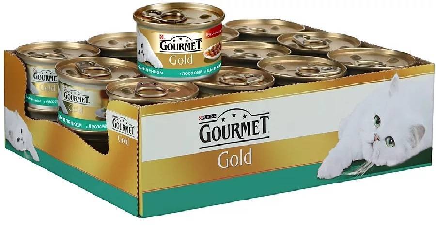 - В общую линейку кормов входит ряд консервов Gourmet Gold, который, даже на фоне великолепного качества всей продукции Гурмет, резко выделяется в лучшую сторону. купить корм для кошки Gourmet Gold – это значит обеспечить своего питомца поистине отличным лакомством. Рецептура этих консервов разнообразна. В состав входит самое лучшее мясо различных животных и птиц, а также деликатесная рыба и овощи. Корм Gourmet Gold позволяет разнообразить пищевое меню вашей кошки и принести ей настоящее удовольствие от потребления этого деликатеса.