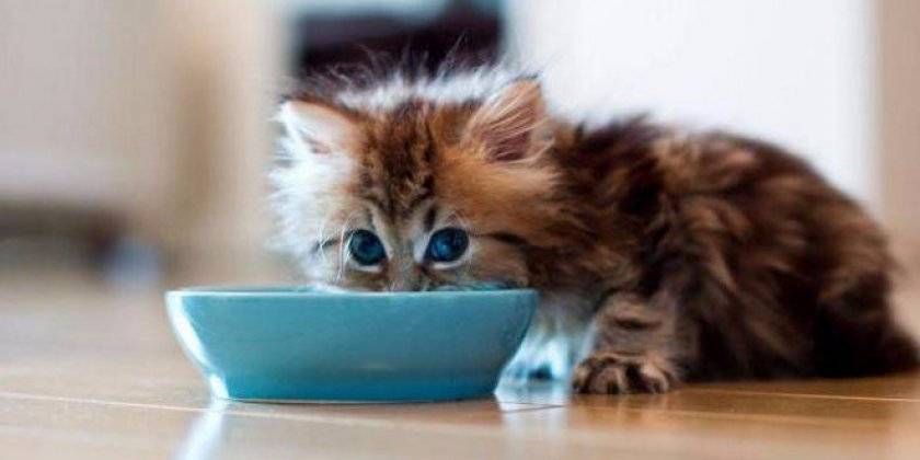 При кормлении котят сухим кормом ситуация совсем иная: влаги в нём не более 7–10%, а значит, нужно следить за её поступлением в организм другим путём. Доступ к чистой свежей воде должен быть круглосуточным. Если жильё просторное, можно расставить мисочки с питьем в двух–трёх местах — там, где любит бывать котёнок.