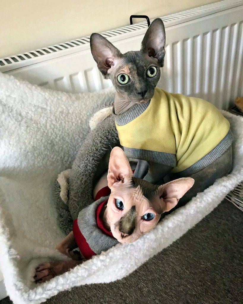 Когда сфинксы двигаются, то они не требуют особого контроля температурного режима, а вот во время сна животное должно находиться в тепле. В основном такие кошки спят под одеялом, прижавшись своим телом к хозяину.