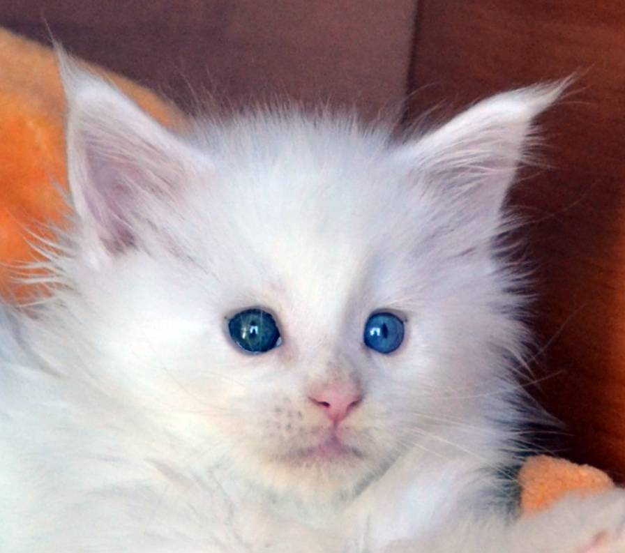 Эта порода легко поддается тренировке. Белые котята умны, воспитаны, ласковы, быстро привязываются к человеку. Шерстку таких питомцев следует тщательно вычесывать. В межсезонье белый . На практике питомцы с разными глазами часто имеют проблемы со слухом.
