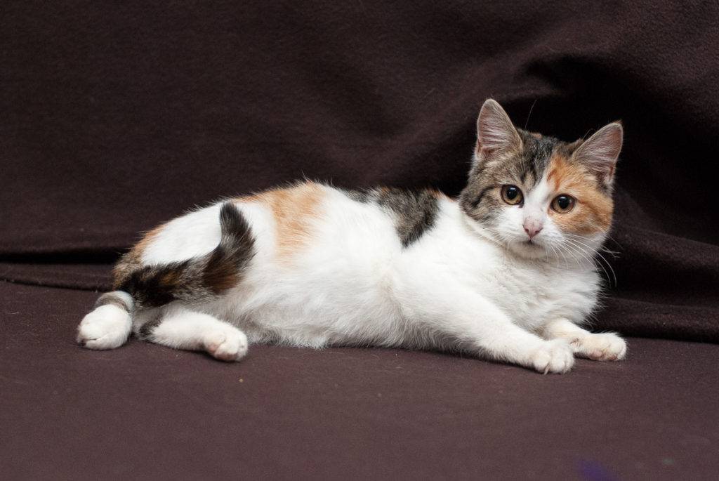- Калико, или лоскутный. Под этим названием подразумевается черно-рыже-белая расцветка. Белые пятна могут быть четко очерчены или размыты. При виде обладателя такого окраса создается ощущение, что на него надет камуфляжный костюм.