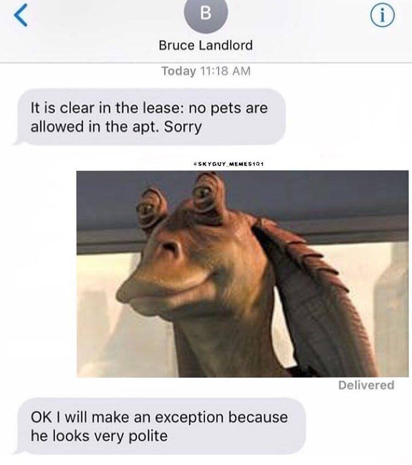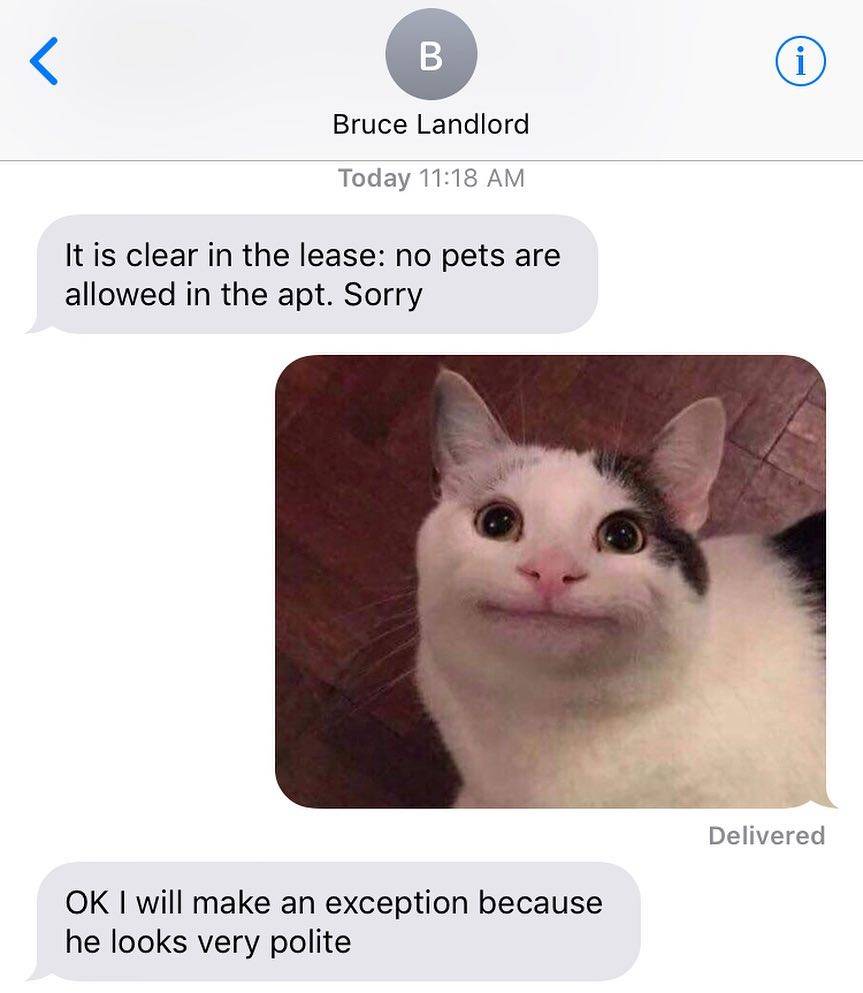 Домовладелец: “Окей, я сделаю исключение, так как он выглядит очень вежливым”.