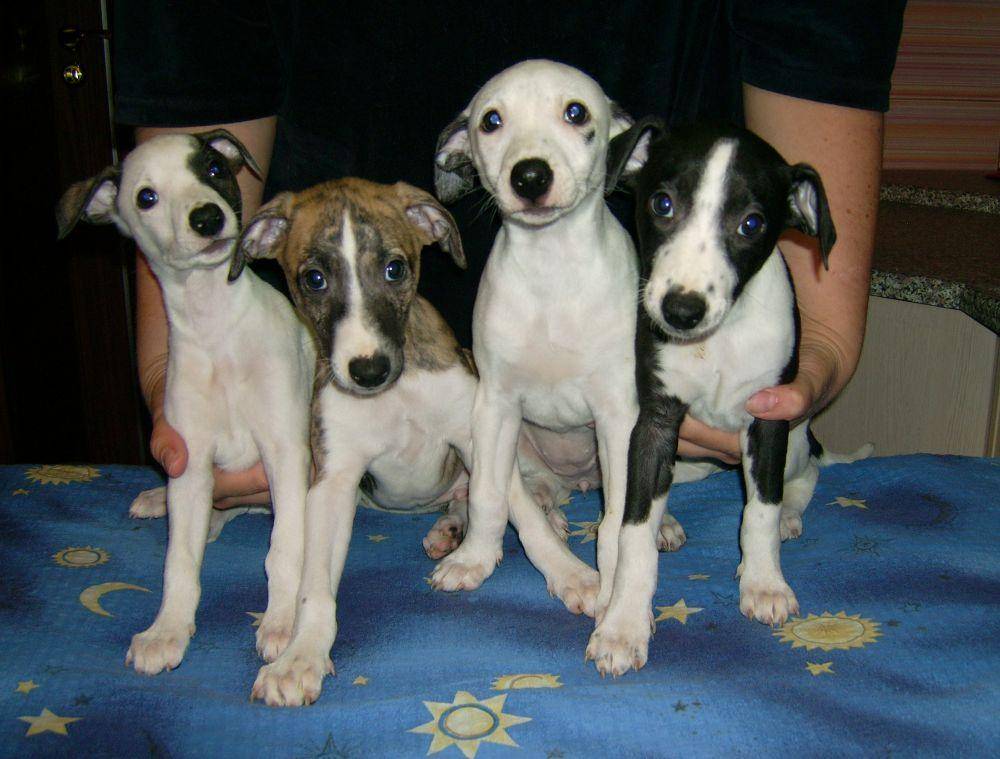 Здоровый малыш любопытный и плотный, в отличие от взрослой поджарой собаки, так как любит хорошо поесть. Он чистый, пахнет молоком, шерстка блестит и лоснится. Выбирайте щенка с длинной, но пропорциональной головой. Большая разница среди габаритов у малышей одного помета – знак недобросовестных производителей у заводчика. Щенки уиппета, рожденные от одной матери, должны иметь примерно одинаковый размер.