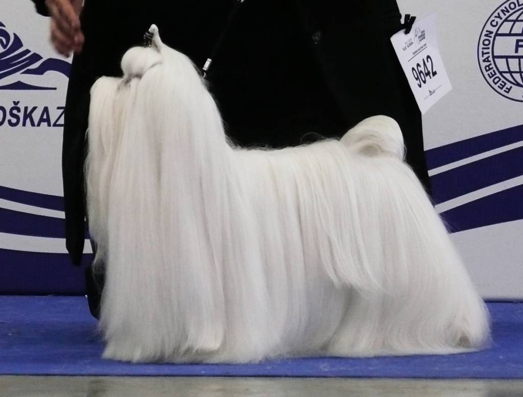- Конечно, наиболее отличительной чертой породы является шерсть мальтийской болонки. Тело очень обильно покрыто блестящей и шелковистой шевелюрой. Волос полностью прямой без каких-либо завитков. Средняя длина составляет 20 см, а максимальная не должна намного превышать высоту собаки в холке.Длинная шерсть должна хорошо покрывать туловище животного, передние конечности, голову, шею и хвост. На теле собаки не должно быть торчащих пучков, все волоски располагаются близко к телу и направлены в пол. Под шерстью должны просматриваться только главные линии тела.