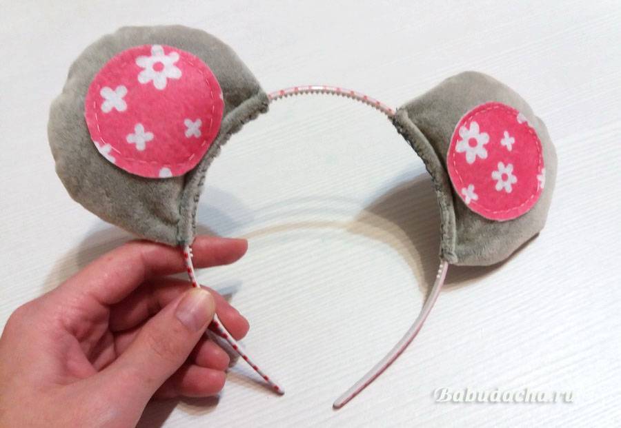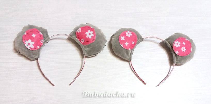 Рекомендации: Шить такие ушки можно целиком из фетра, причем лучше взять не жесткий, а мягкий. Дома у нас не оказалось мягкого фетра серого цвета, а из жесткого толщиной 1 мм ничего сшить не получилось — ушки получались с заломами