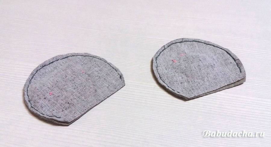Теперь сшиваем попарно серые детальки, оставляя снизу отступ шириной в 1 см: