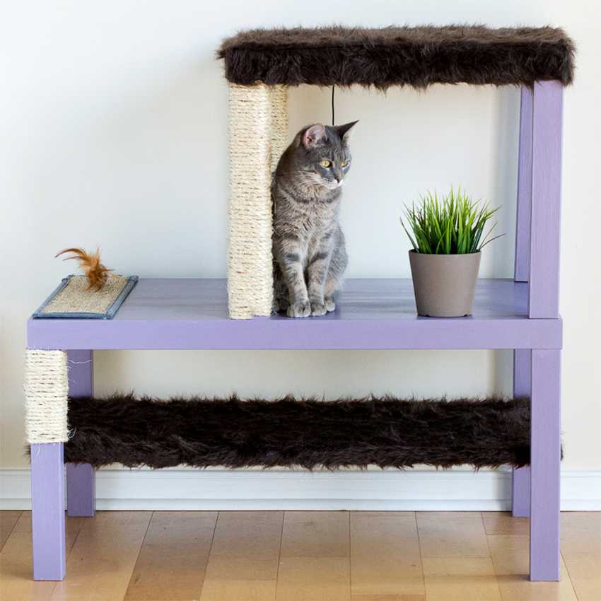 Устанавливаем конструкцию поближе к месту, где ваше животное приспособилось точить когти, приносим туда котейку и доходчиво объясняем, для чего в доме появился новый интересный предмет. Вуаля!