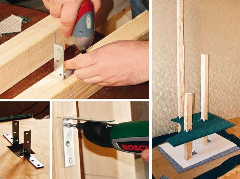 В качестве крепежа для выполненной своими руками из подручных материалов когтеточки лучше не использовать гвозди. Саморезы считаются более надежными, а конструкция из них будет более устойчивой.