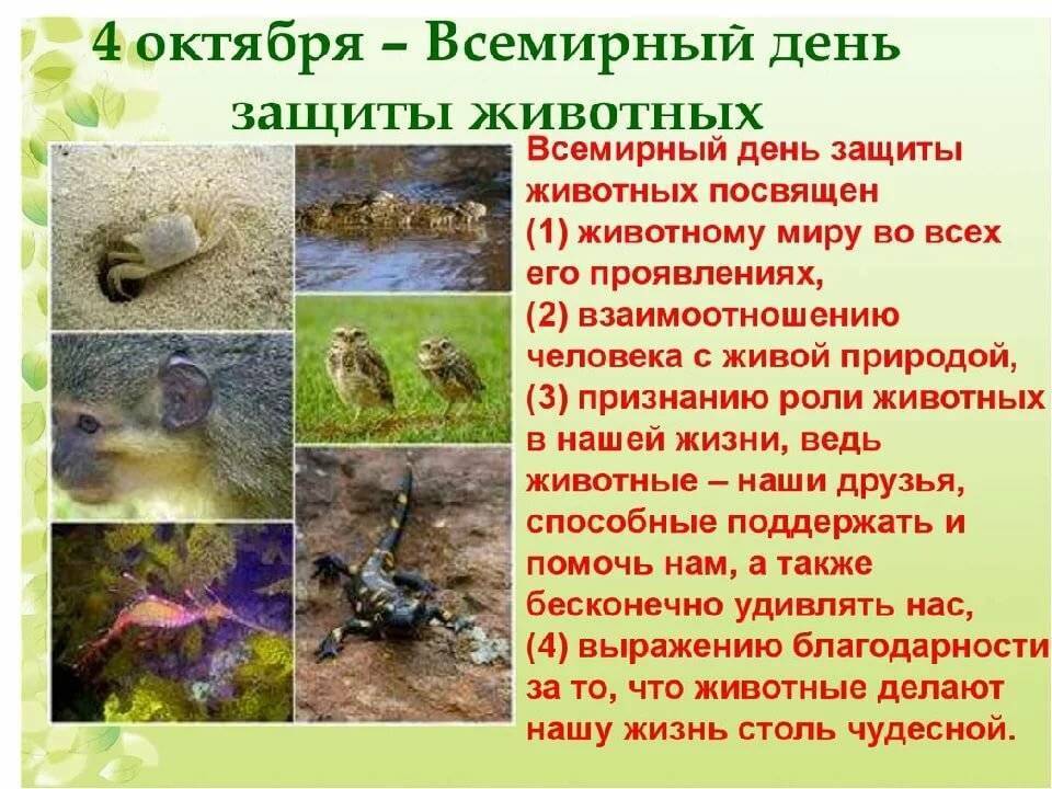 Организованы научные лаборатории и питомники, цель которых – разведение редких видов животных. В лесных угодьях трудятся егеря и лесники, которые не только отслеживают поголовье фауны, но и подкармливают живность, ведут борьбу с браконьерством. Сотрудники этих организаций по праву могут считать праздник, посвященный защите животных, своим.