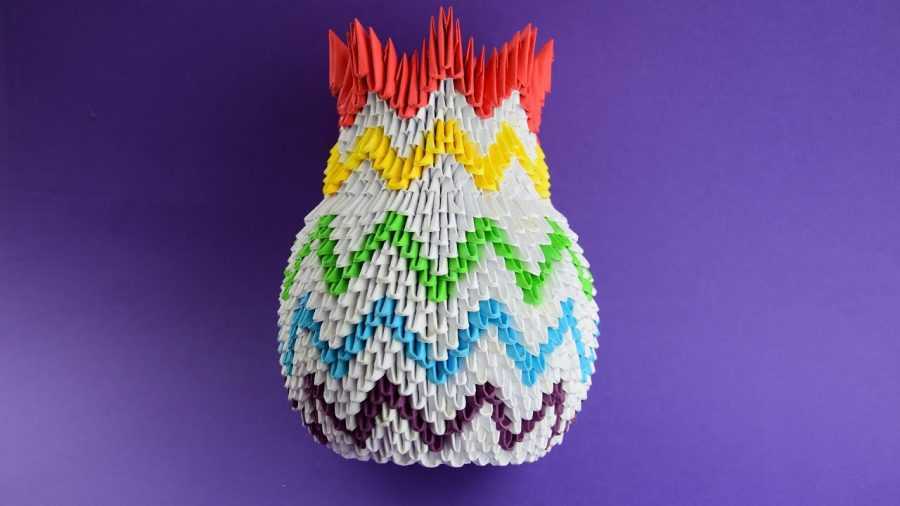 - На 18 оригами-модулей надевают 17, далее на 17 надевают 18. Так чередуют до 20 ряда.