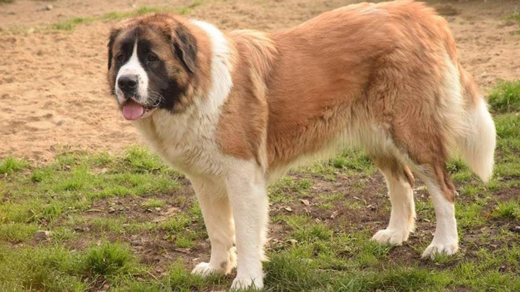 Основными были сенбернар и кавказская овчарка. От первого хотели получить покладистость, яркую внешность, неприхотливость к условиям содержания, а от второй породы – сторожевые качества, умеренную агрессию, легкость движений. Русская пегая гончая передала быстроту реакции и звонкий голос.