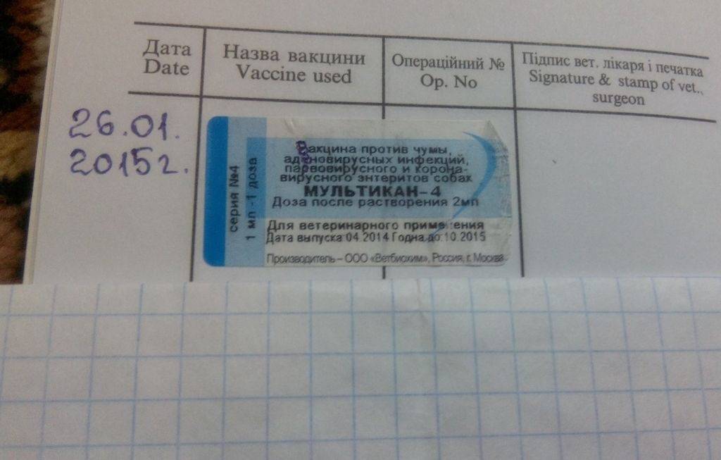 Для контроля состояния животного и периода вакцинации в комплекте с вакциной идут специальные наклейки