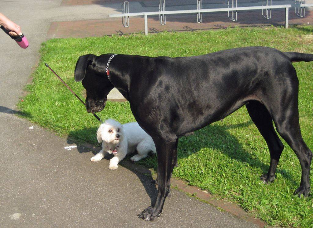 Но нужно принимать во внимание габариты собаки. Неудачно развернувшись, она может сбить с ног малыша, но это единственная опасность. Лучший досуг для дога — вместе со всей семьёй, одиночества они не любят, комфортнее всего себя чувствуют, если кто-то из семьи находится дома