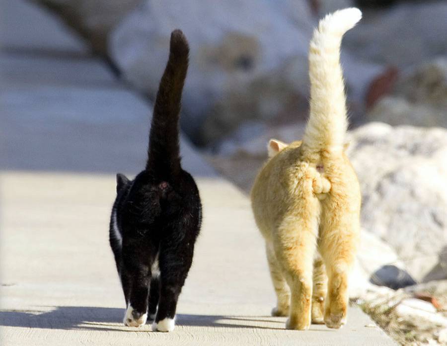 Отличия в том, что у новорожденных мужского пола отверстия будут выглядеть как две вертикальные точки, расстояние между которыми не менее 1 см. Между «двоеточием» будет проглядываться еще одна «дырочка» — со временем тут будет пенис. У маленьких котят женского пола под хвостом анус и вульва напоминают восклицательный знак и находятся рядом друг с другом.
