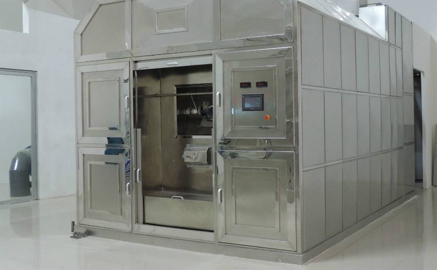 Для организации крематория необходимо качественное оборудование – печи. Они в основном состоят из двух камер. В самой большой камере – кремация тела в гробе. Второе отделение предназначено для сжигания продуктов сгорания (примеси и пр.). Из труб будет выходить нагретый воздух без дыма и гари. Гроб загружают в печь с использованием гидравлической тележки (имеются разные модели).