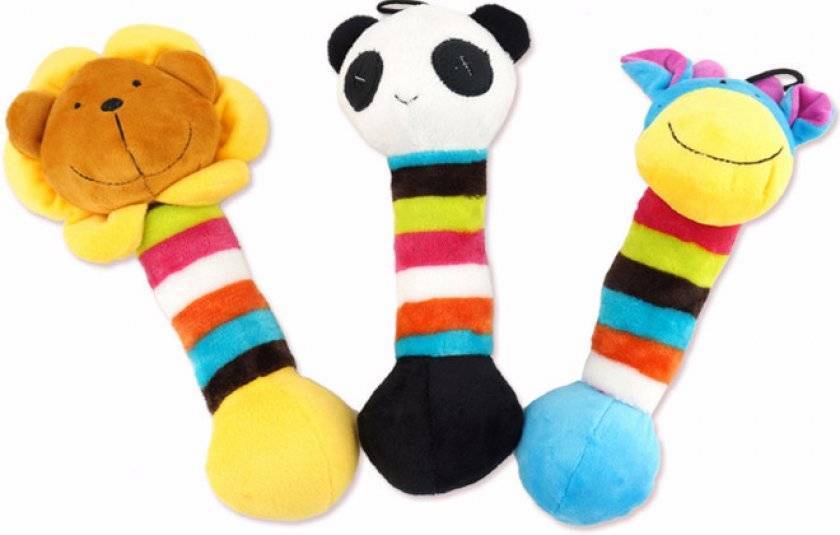 - Резиновые и латексные вещи с пищалкой внутри. Срок использования латексных изделий больше, чем резиновых.