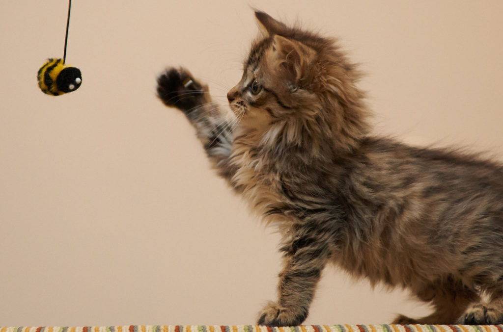 Котят привлекает все, что шумит, звенит, шуршит, взрослые коты предпочитают играть с тем, что движется и напоминает птиц или мышей, за которыми они охотятся в природе. Благодаря игрушкам животные остаются в хорошей физической форме, развивают мускулатуру, интеллект, реализуют инстинкты. Специальные игрушки для котят помогают сохранить хозяйские вещи в период прорезывания зубов.