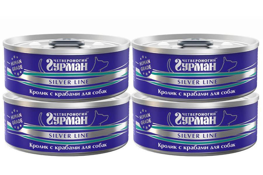 Производитель консервов марки «Четвероногий гурман» акцентирует внимание на основном ингредиенте в их составе — мясе. Но кроме него присутствует еще несколько компонентов: