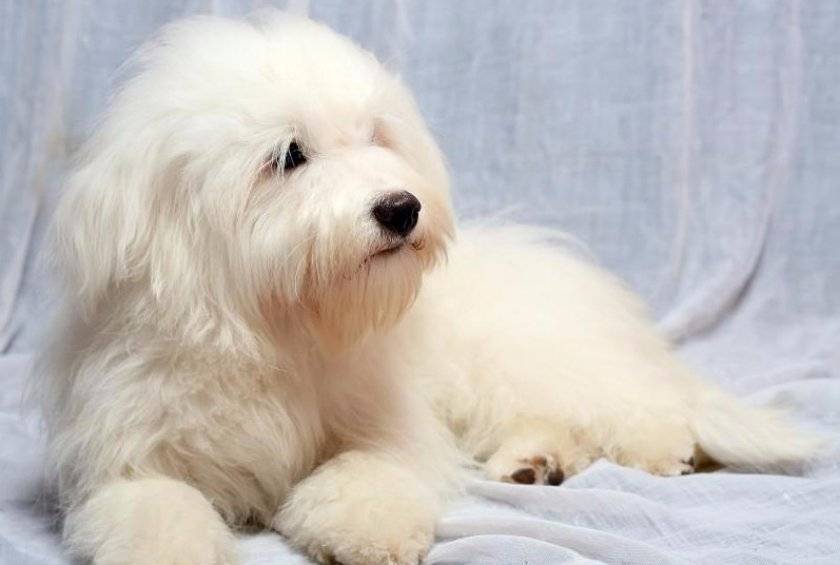 ШЕРСТНЫЙ ПОКРОВ: собака полностью покрыта густой, длинной ( 7 – 10 см. ) шерстью с хорошо развитым подшерстком. Остевой волос средней жесткости, длинный с небольшим изломом, у молодых собак и собак в линьке шерсть может быть несколько короче. На голове уборный волос образует челку, закрывающую глаза и доходящую до мочки носа, усы и бороду.