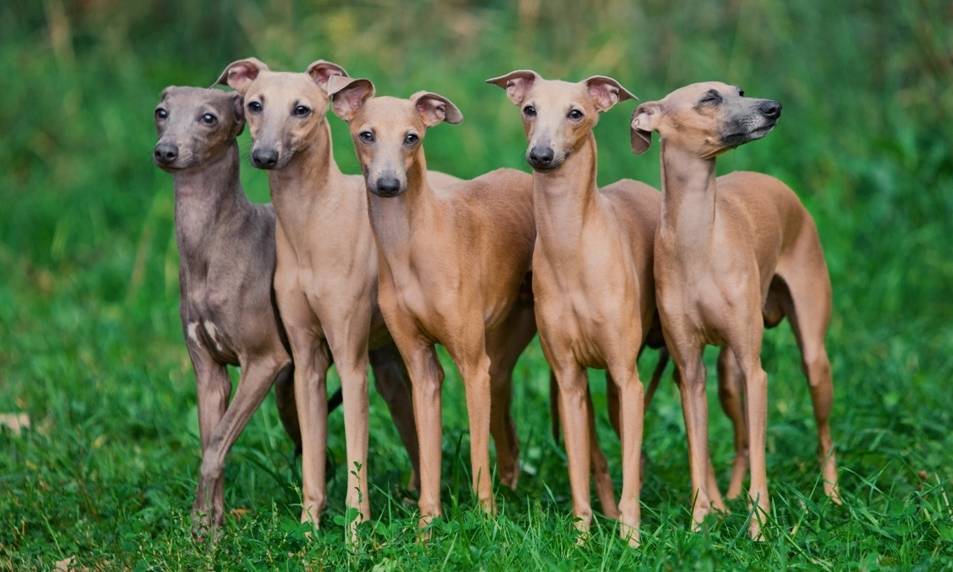 Уиппет. Эта малая английская борзая — эталон элегантности, отличается быстротой, смелостью и выносливостью. Породу вывели на территории Великобритании, используя грейхаунда и левретку, специально для охоты на зайца и кроликов, эти собачки отлично справлялись со своими обязанностями.