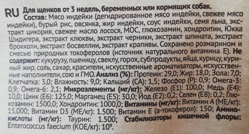 Фото состава указанного на упаковке корма.