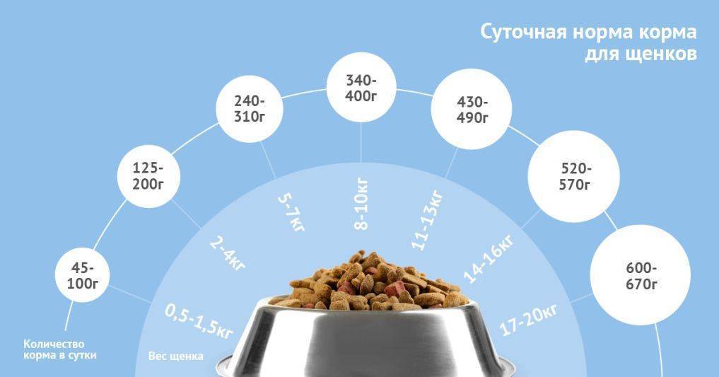 Стандартно, щенков в 1-2 месяца кормят 6 раз в день, с 2-х до 3-х месяцев – 5 раз, 3-4 месяца – 4 раза, затем переводят на 3-х разовое питание, а после 8-10 месяцев на 2-х разовое. Однако, нормы индивидуальны для каждой породы, лучше обсудить их с ветеринаром или заводчиком.