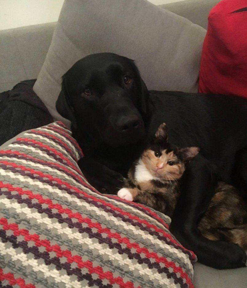 Постепенно необъяснимое обаяние котят топит лёд в самых неподкупных сердцах суровых псов. Наша годовалая собака породы далматин страдала от ложной беременности в то время, когда дочери подарили месячного британского котёнка. Сука выкормила его, как родного щенка. И со всей ответственностью ударилась в его воспитание. Да так, что у него сохранилось идеальное поведение на протяжении уже восьми лет.