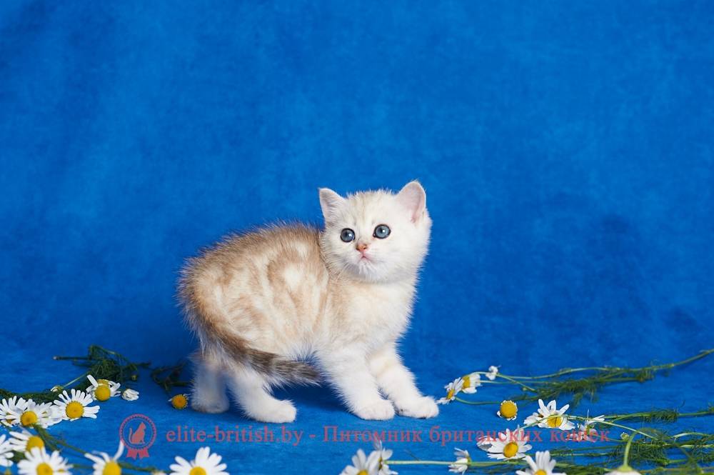 Пятнистый окрас британцев по стандарту обязательно должен содержать букву «М» на лбу, «ожерелья», полосы на лапках, кольца на хвосте, пятна на животе, контрастный рисунок, подводка глаз и носика.