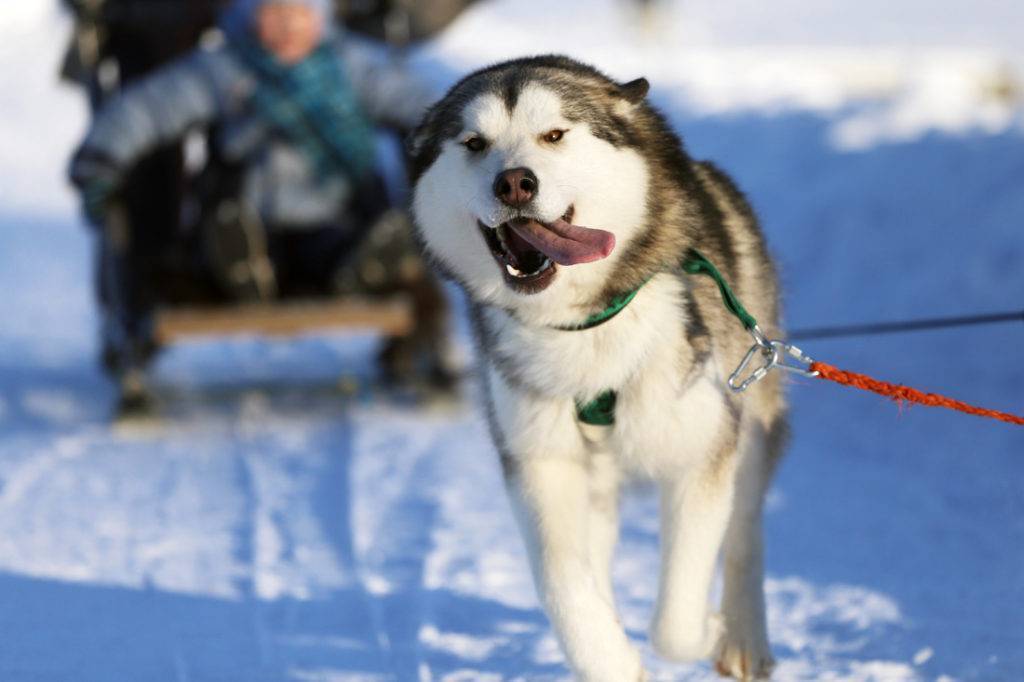 Эта удивительная, красивая и благородная порода собак из Арктики — одна из самых давних ездовых пород, использующаяся в упряжке, иногда её даже называют «северным поездом для снега». Аляскинский маламут обладает отличной приспособляемостью к любым, даже чрезвычайно суровым условиям. Он способен транспортировать на себе сани с человеком или грузом на расстояние нескольких километров.