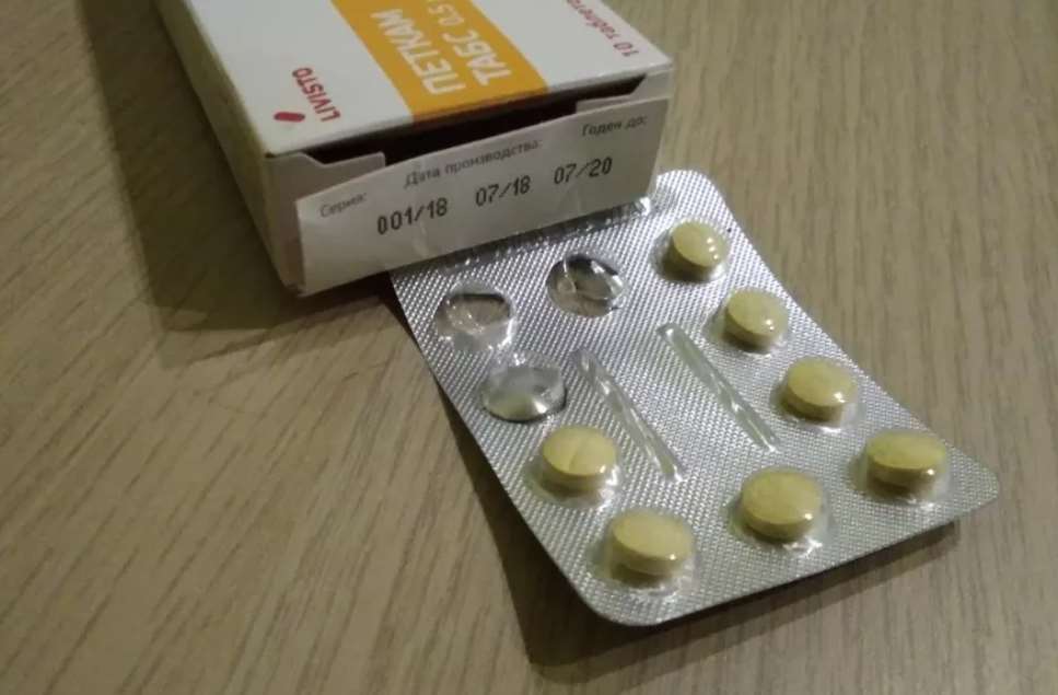 Таблетки Петкам имеют круглую форму, выпуклые с двух сторон, цвет бледно-желтый, имеется маркировка.