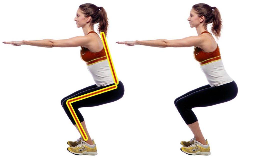 - Опускайтесь вниз, как будто собираетесь сесть на стул, пока бедра не окажутся параллельны полу.