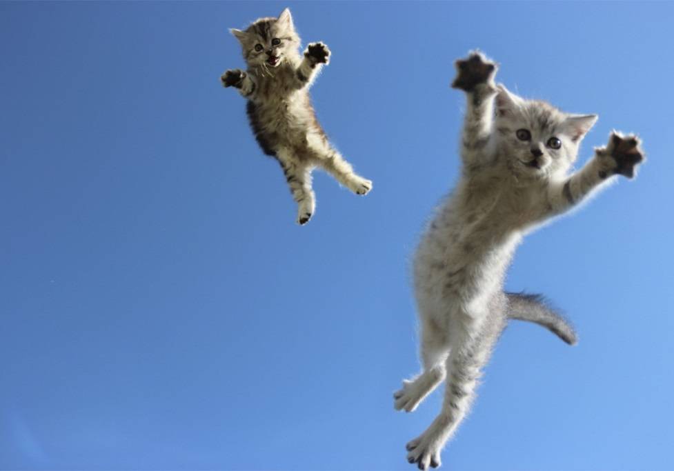 Из какого бы положения кошка ни падала, она всегда успевает за считаные секунды выровнять своё тело и достичь поверхности в правильной позе. Умение удачно приземляться на 4 лапы является природным инстинктом, который проявляется у котят с первых недель жизни.