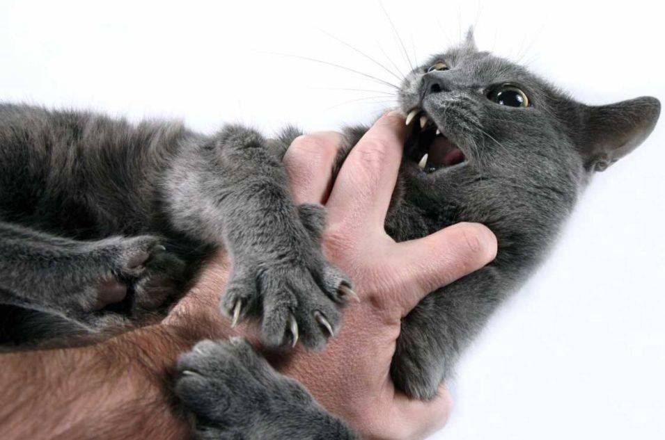 - Брать кошку на руки и прижимать к себе. Скорее всего, такая попытка сразу же провалится, а рассерженный или испуганный кот рассвирепеет еще сильнее. Некоторые питомцы могут на минуточку замереть в руках у владельца, но потом начнут вырываться с удвоенной силой, изворачиваясь и орудуя зубами и когтями.