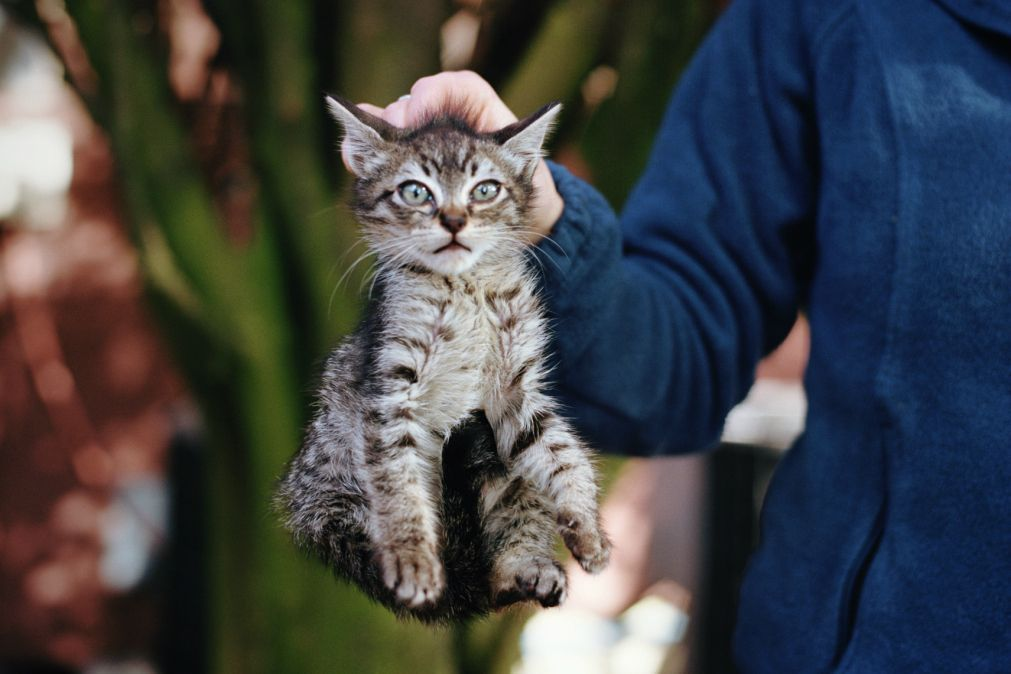 После нескольких недель жизни поднятие котёнка за складку на шее вызывает напряжение в шейных мышцах. Лучше поднимать его так, как это делают со взрослыми животными, то есть одной рукой брать под брюхо, чтобы основной вес ложился именно сюда, а пальцами другой руки поднимать за складку на шее. Тогда у кошки меньше возможности извиваться и случайно упасть.