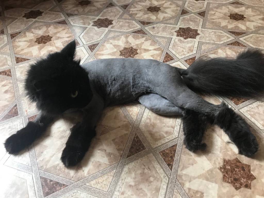- Полностью черный кот после стрижки может обрасти шерстью на несколько тонов светлее. Прежний окрас животного уже не восстановится.