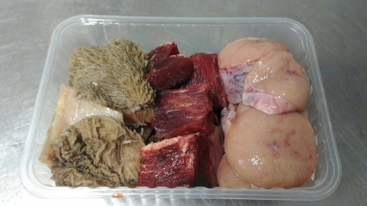 Лайку можно кормить сырым мясом, субпродуктами, крупами и овощами.