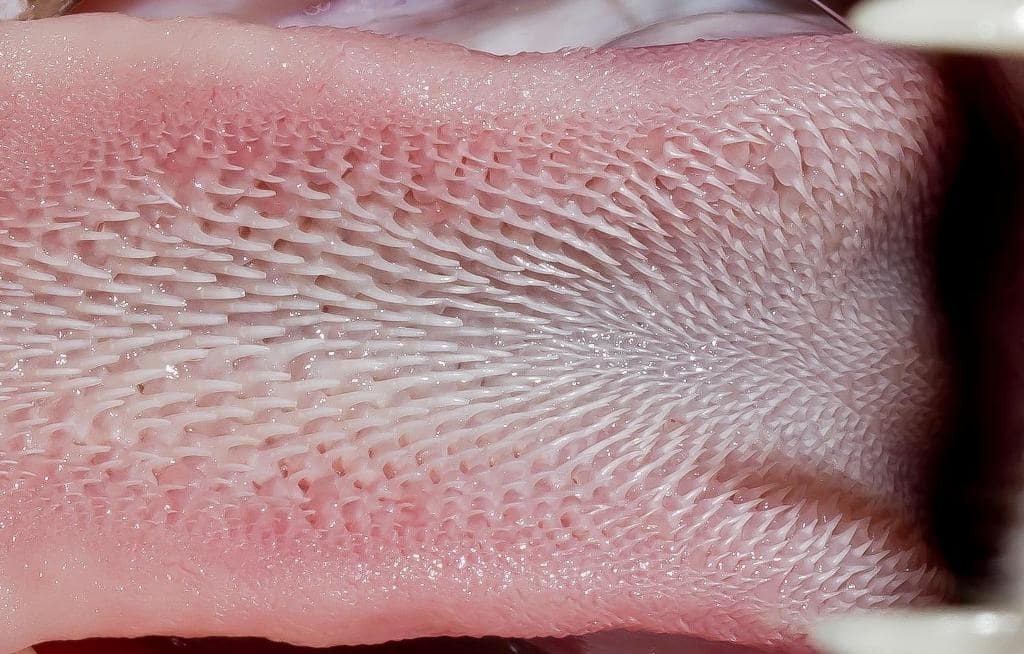 Строение языка кошки представляет определенный интерес в первую очередь из-за того, что животное умудряется пить только при его помощи. Язык длинный, очень гибкий и, в отличии, например, от собачьего, очень шершавый. Эффект «наждачной бумаги» возникает из-за ороговевших сосочков, которые помогают удерживать пищу, плюс являются своеобразной щеткой для чистки шерсти. Кроме того, язык выполняет привычную нам функцию – это распознавание вкусов еды. Кошка может чувствовать соленое, горькое, сладкое и кислое.
