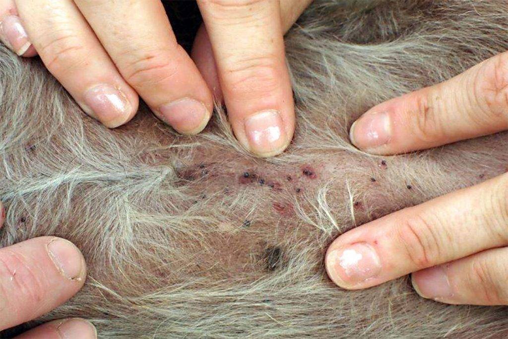 Паразиты, снятые с собаки после применения капель Прак-тик