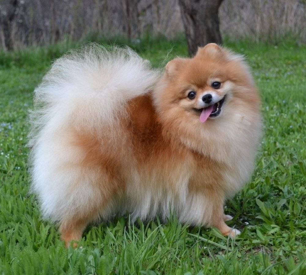 Главное отличие померанцев – красивый, мягкий и густой мех. Благодаря плотному подшерстку он поднят кверху, так, будто его специально уложили феном. Максимум шерсти растет у шпица на шее, плечах, задних лап и на хвосте.