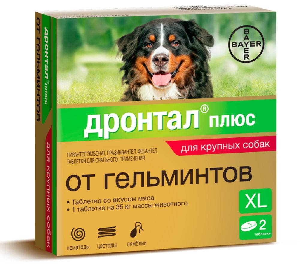 - «Дехинел Плюс». Препарат помогает избавиться от круглых и ленточных паразитов. Лекарство можно использовать только для собак крупных и средних пород, для беременных животных со второй половины вынашивания лишь с разрешения врача. Щенкам подобное средство разрешено только с 7 недели под контролем ветеринара.