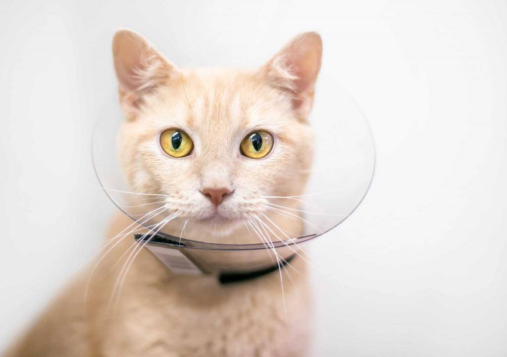 - Нельзя разрешать коту вылизывать швы, это может спровоцировать кровотечение и инфекцию. Можно надеть на него пластиковый воротник, так он не дотянется до швов.